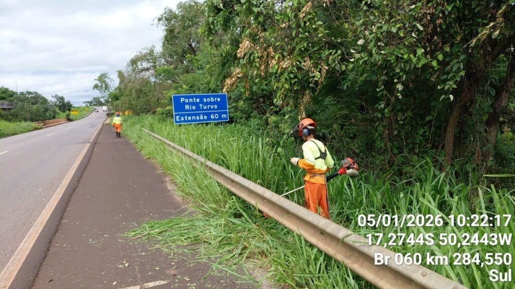 Por isso, as equipes atuam de forma preventiva, especialmente nos trechos com maior fluxo de veículos e onde o mato está mais alto. Nas BR’s 060 e 452 temos frentes de serviço realizando a roçada de segurança em pontos críticos da rodovia, garantindo a visbilidade e segurança ao usuario que trafega pelo trecho.
